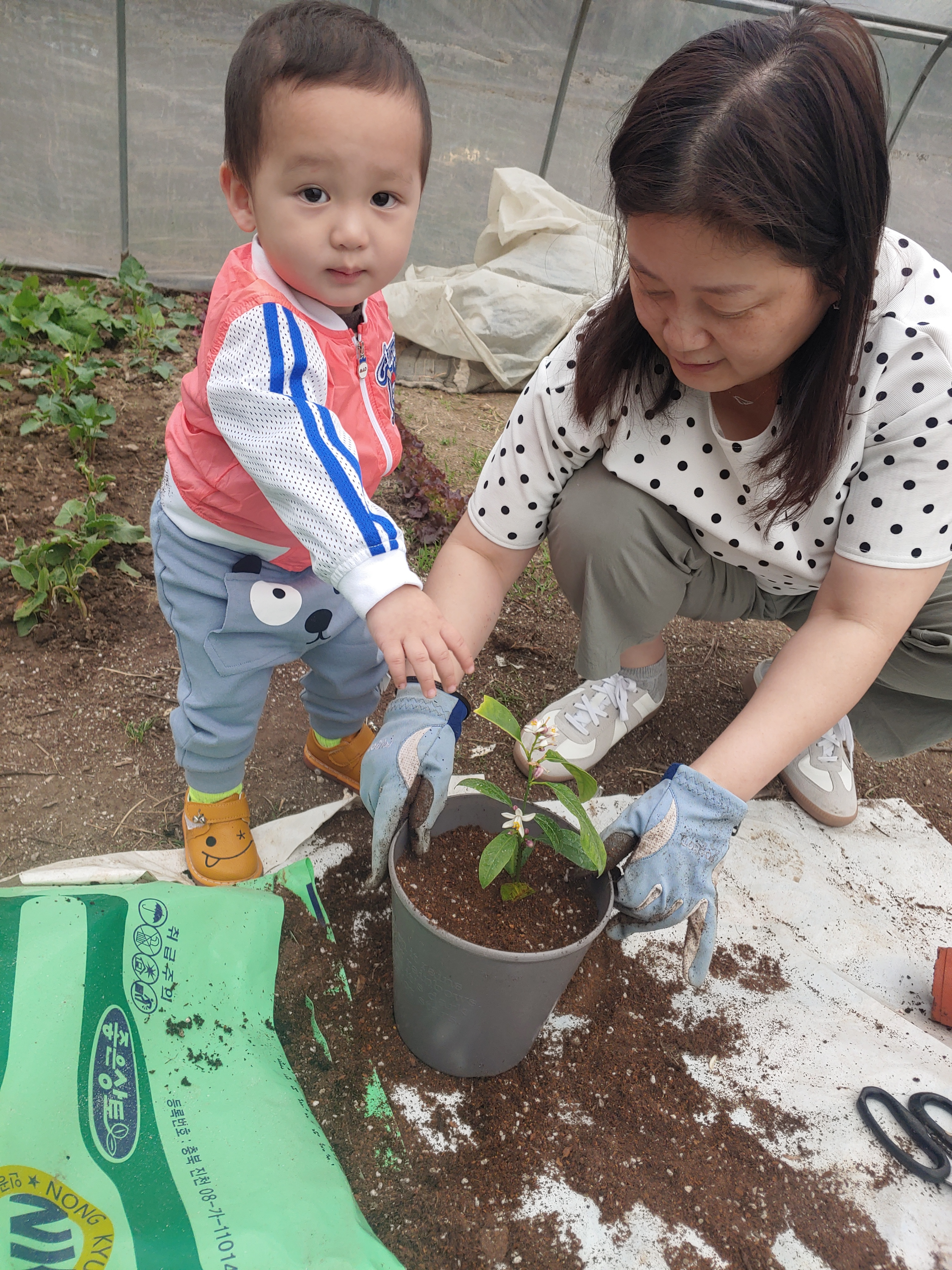 아이들 유치원에서 나무심기행사를 하는데